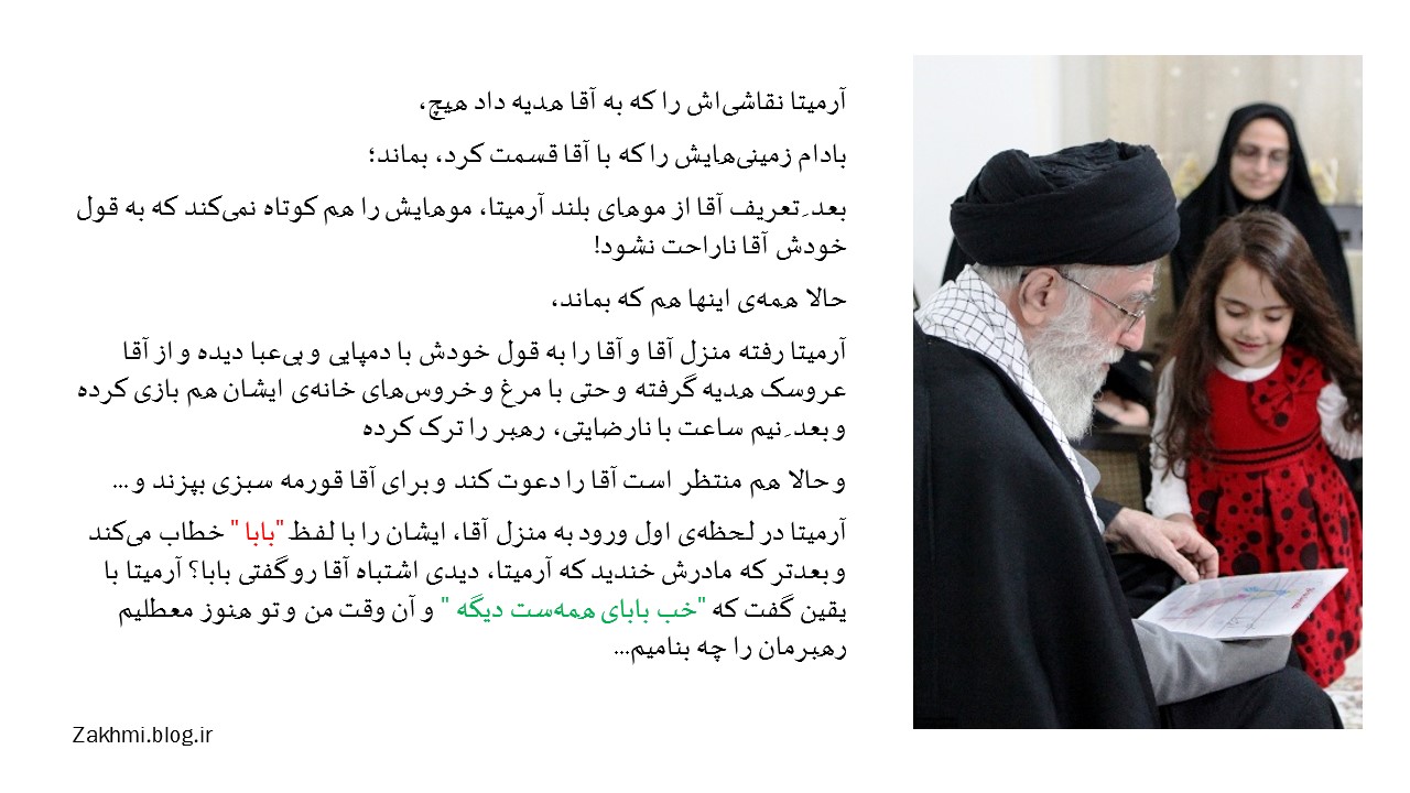 علی اکبرم خیلی آروم میخندید و من میفهمیدم ک از این عضای معنوی او هم داره لذت میبره. و من به وجود با برکت علی اکبر افتخار میکردم.